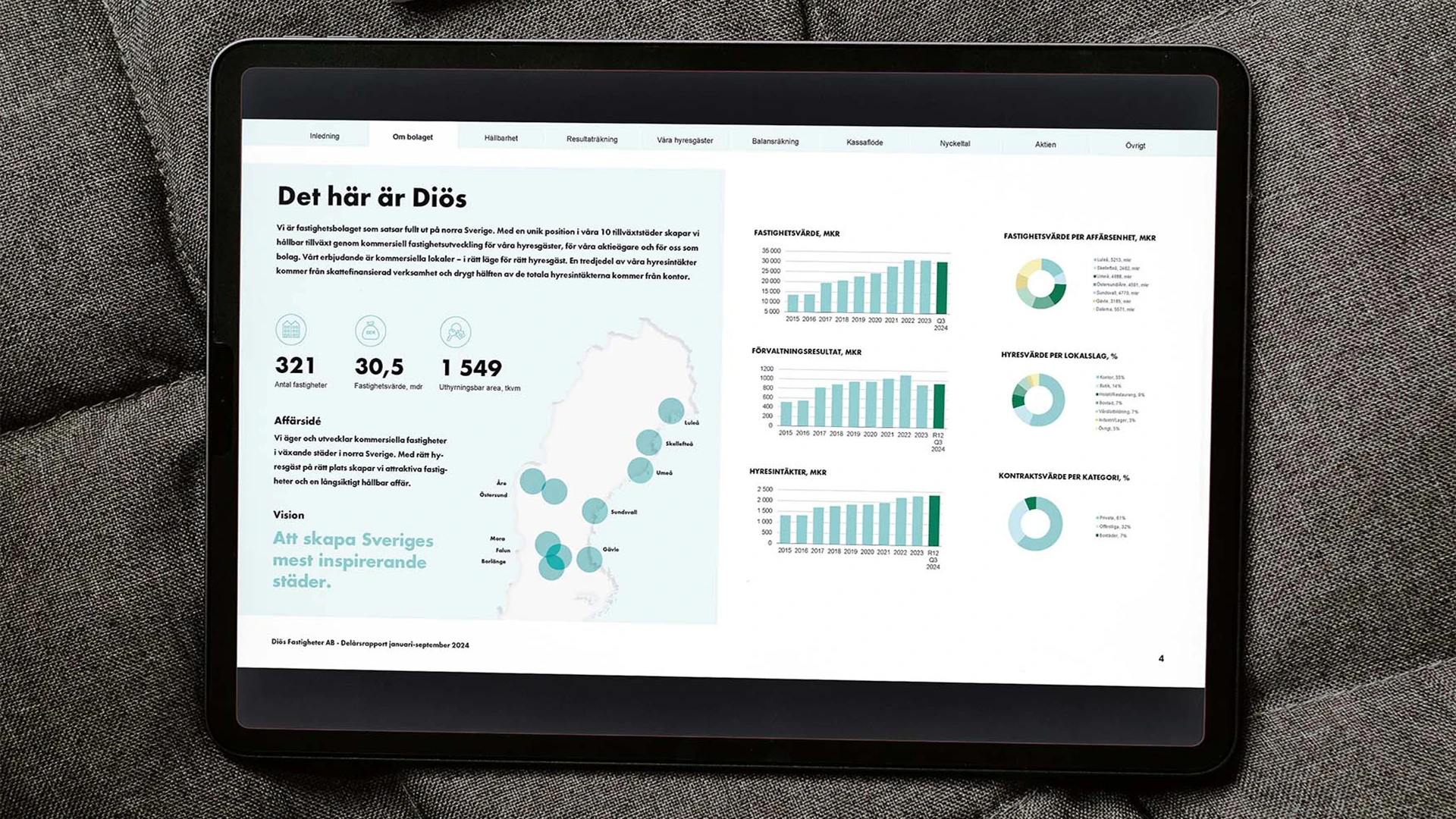 Automatisera era rapporterLäs mer om våra Office-mallarDiös Fastigheter är norra Sveriges ledande privata fastighetsbolag, med verksamhet från Borlänge till Luleå. Företaget äger, utvecklar och förvaltar centralt belägna fastigheter för handel, kontor och bostäder och arbetar långsiktigt med hållbar stadsutveckling för att skapa attraktiva miljöer där människor vill bo, arbeta och mötas.